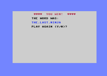 The objective of the game is to deduce a word, chosen from a small database of 80 terms emblematic of "retro-computer" culture, thereby saving the C=64-man from an impending explosion.